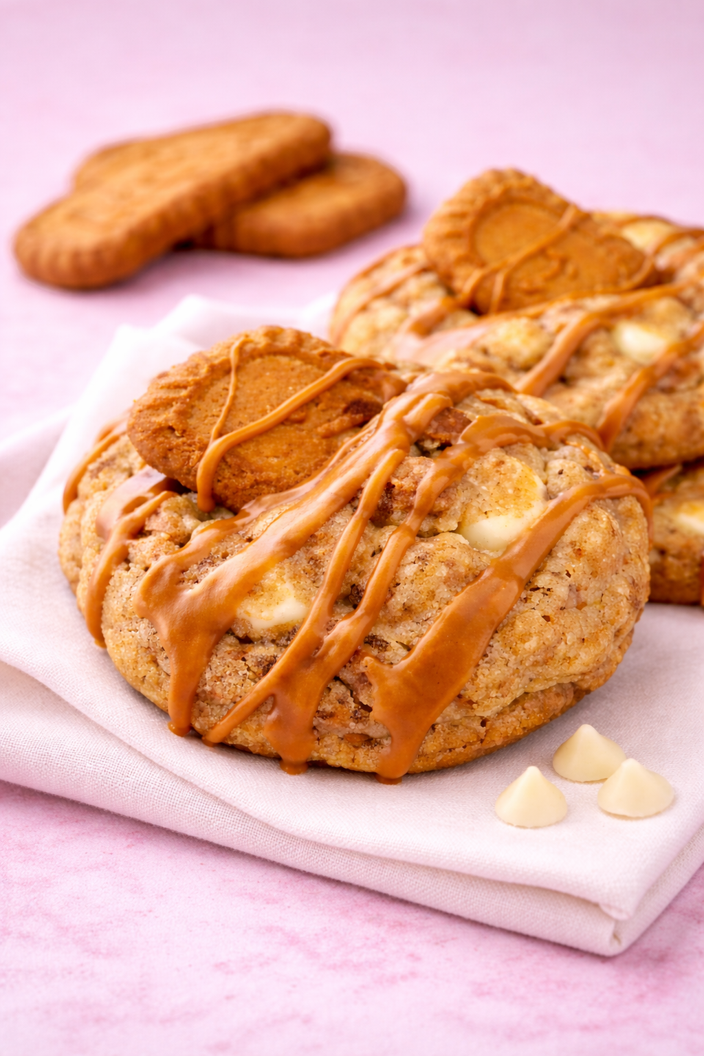 A soft cookie loaded with Lotus Biscoff, Belgian white chocolate chips, and finished with a silky Lotus drizzle.